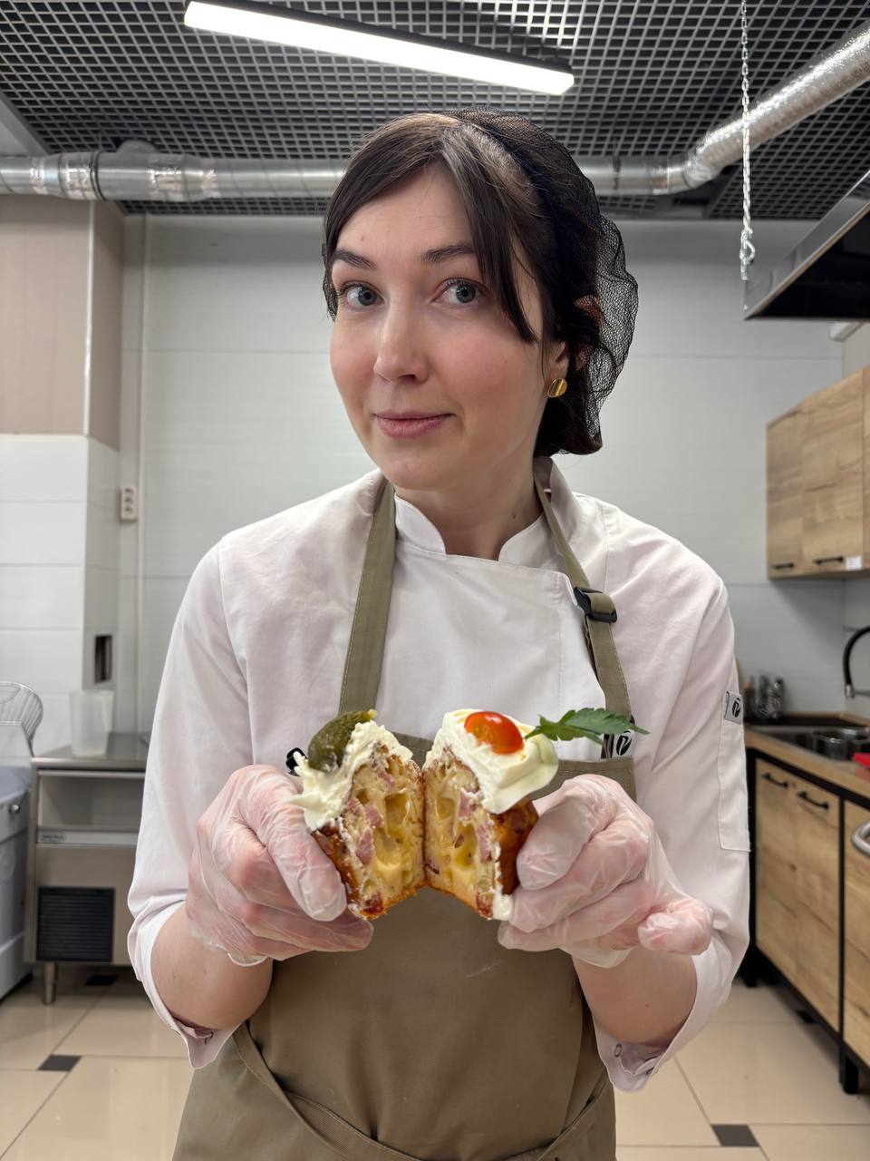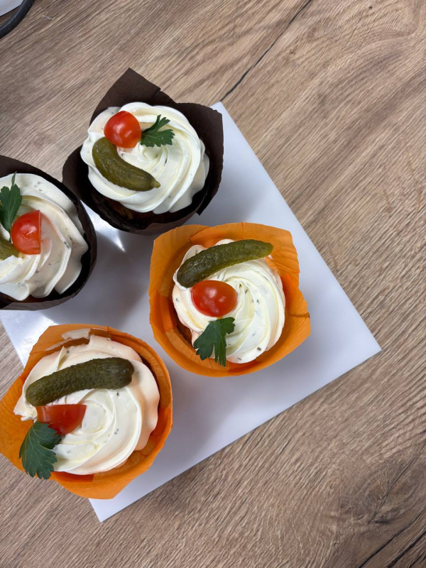 - Нарезаем ветчину, сыр, помидоры и маслины мелкими кубиками (0,5 см). Добавляем в тесто и перемешиваем ещё минуту на низкой скорости.