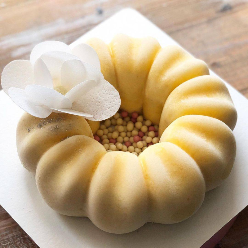 Выливаем в форму 1/3 мусса, выкладываем начинку, выливаем оставшийся мусс, выкладываем бисквит, хрустящим слоем в мусс. Замораживаем