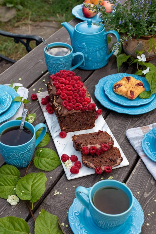 КЕКС шоколадный со смешанным кремом и малиной