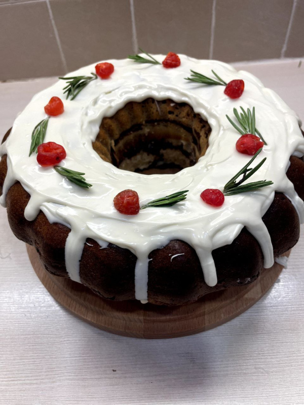 Оформляем покрытием Alba, вяленой вишней и веточками розмарина.