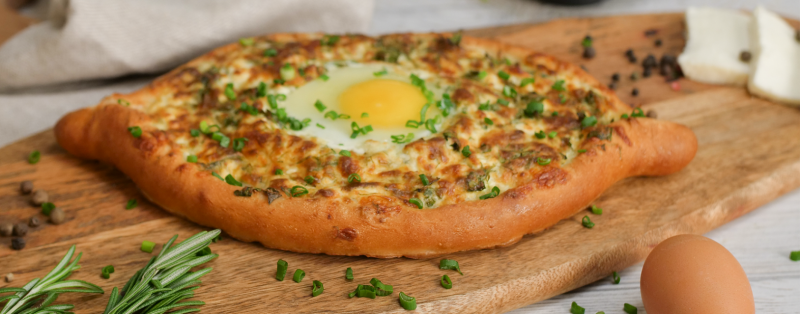 Выпекайте 15 – 20 минут. Через 20 минут после начала выпечки выньте хачапури из духовки, сделайте в начинке небольшое углубление и аккуратно выложите в него яйцо. Допекайте хачапури 1 – 2 минуты до желаемой степени готовности яйца.