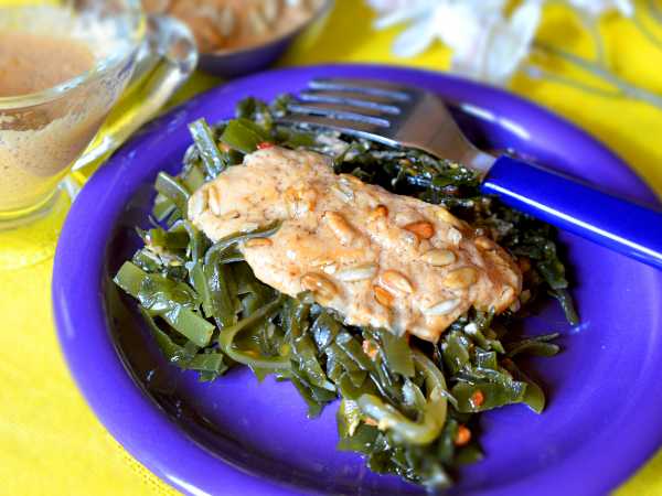 Ореховый соус для салата готов. Морскую капусту этот соус способен превратить в блюдо ресторанного класса.