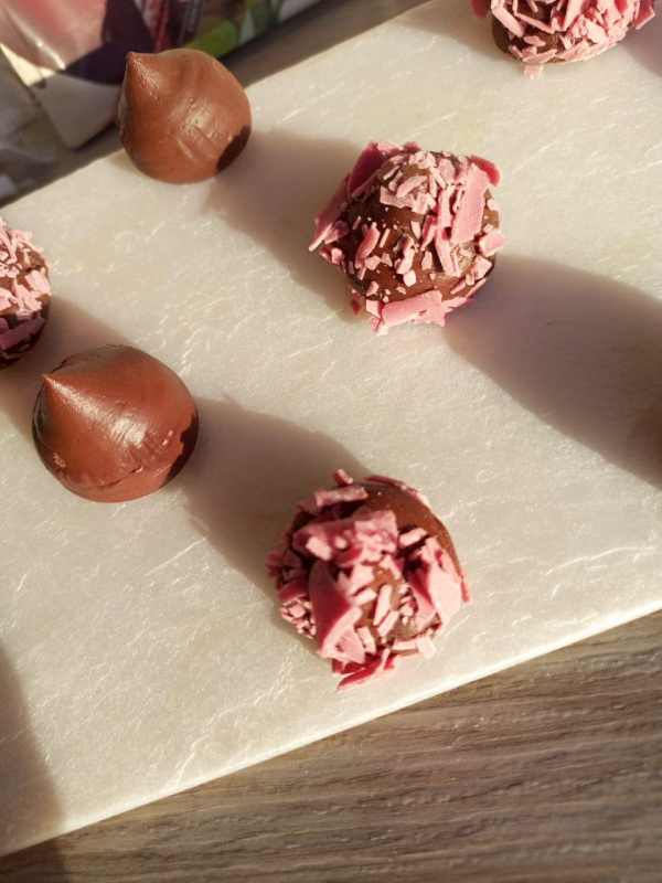 Оставить для стабилизации при температуре 16-18 градусов на 12-24 часа. Затем скатать шарики или придать форму куполков, оставить на 2 часа.