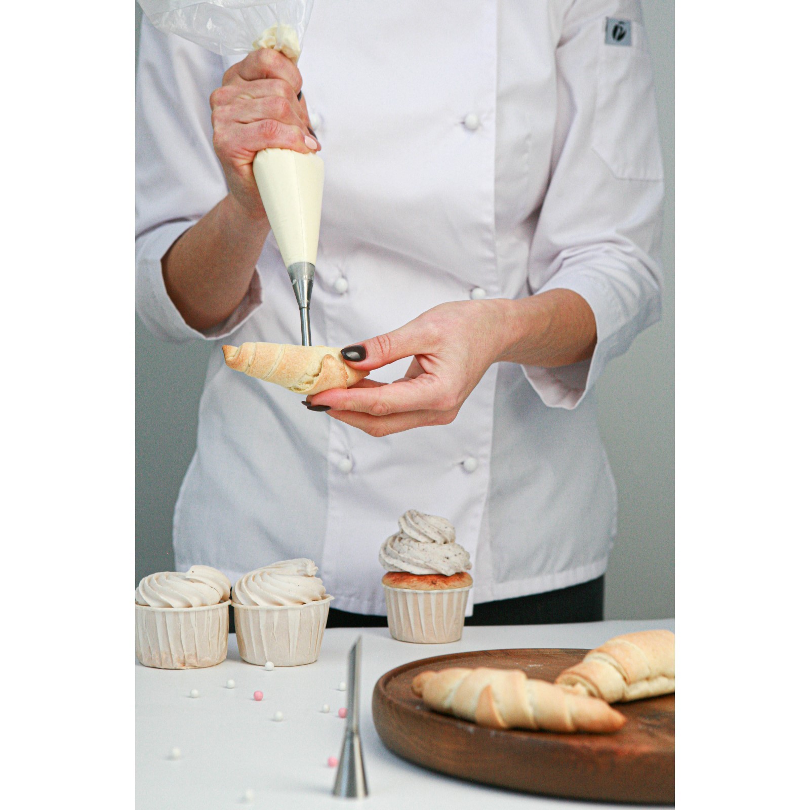 Насадка предназначена для нанесения на десерты необычных украшений из крема. Пользоваться изделием просто: достаточно присоединить его к универсальному кондитерскому мешку.