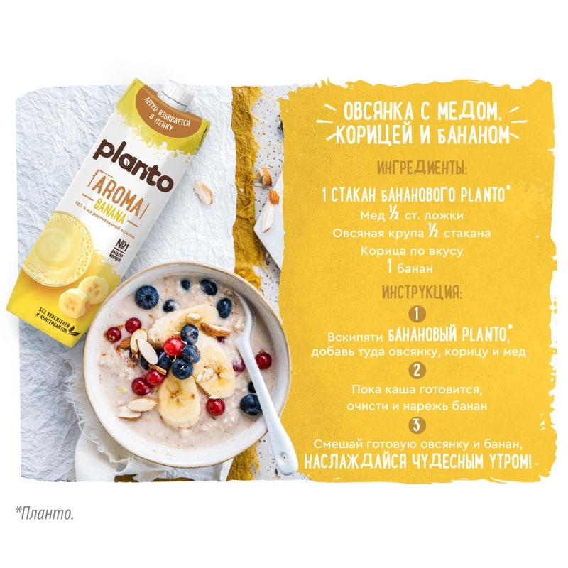 овсяный напиток (подходит для веганов)Банановый Planto - это напиток на 100% растительной основе, разработанный совместно с бариста специально для профессионалов и истинных кофеманов. Наш напиток отлично сочетается с кофе, легко взбивается в нежную пенку и позволяет нарисовать креативный латте-арт. А еще он идеально дополнит твою любимую кашу, хлопья и смузи.