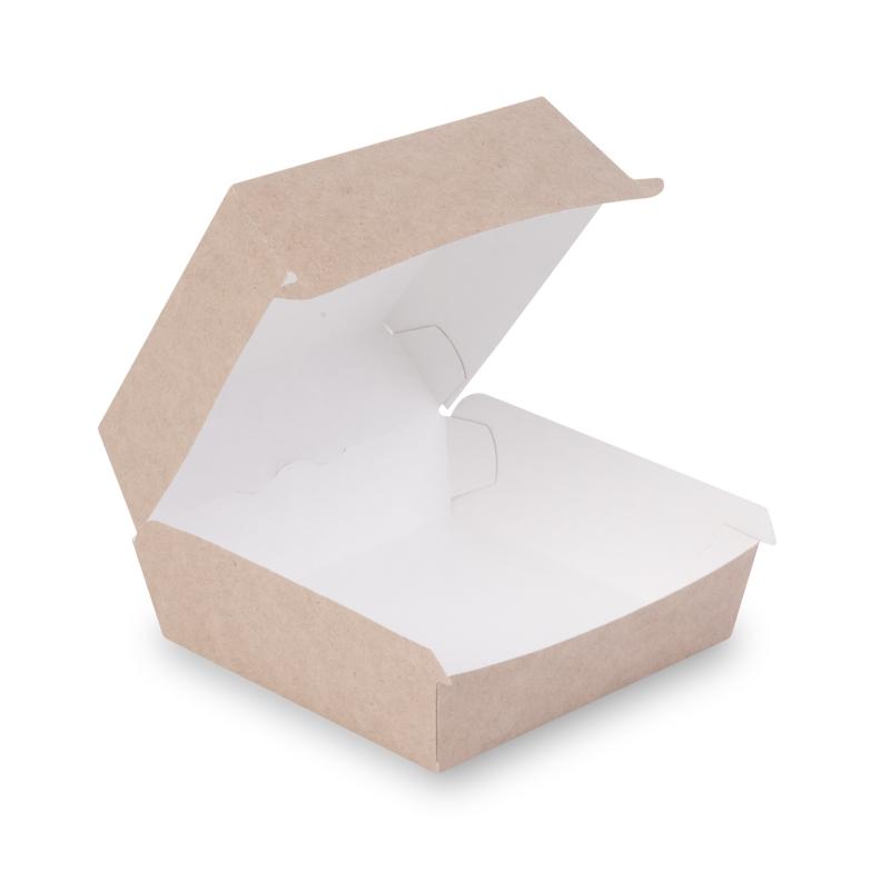 Упаковка OSQ Burger M имеет крафтовый цвет и тип упаковки без окна. Она подходит для жирных и сухих продуктов и поставляется в плоском виде.