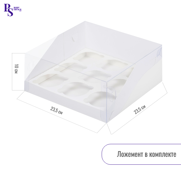 **Профессиональный дизайн** – белоснежный корпус подчеркнет изысканность ваших капкейков, а ложемент внутри зафиксирует их на месте.